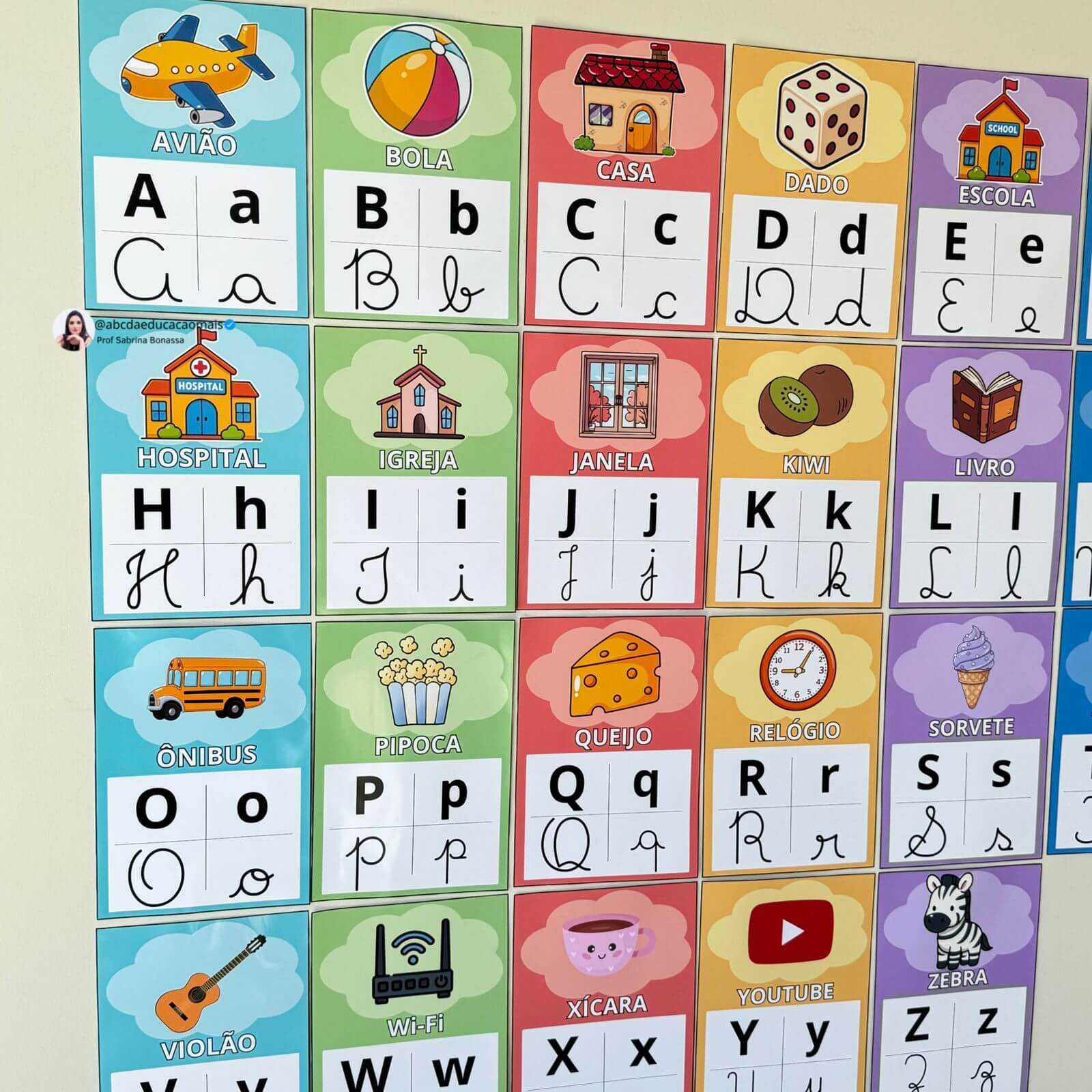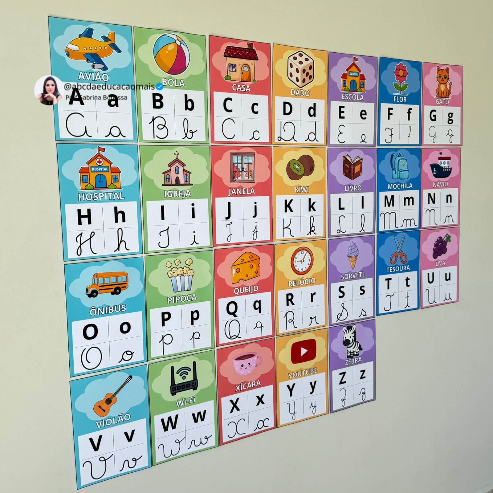 Este Alfabeto de Parede Pedagógico foi desenvolvido especialmente para apoiar o processo de alfabetização das crianças, unindo visual atrativo, cores suaves e intencionalidade pedagógica.