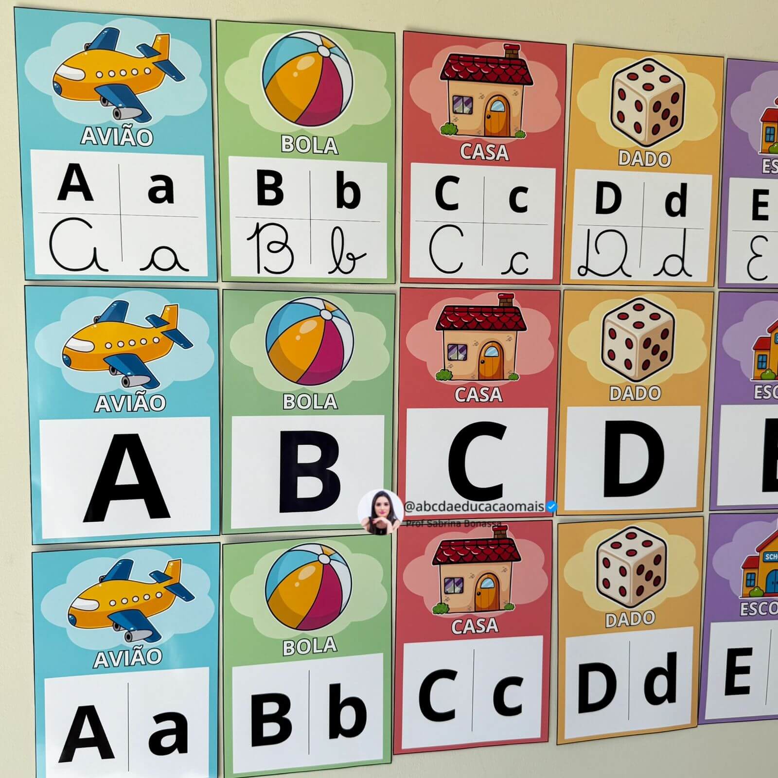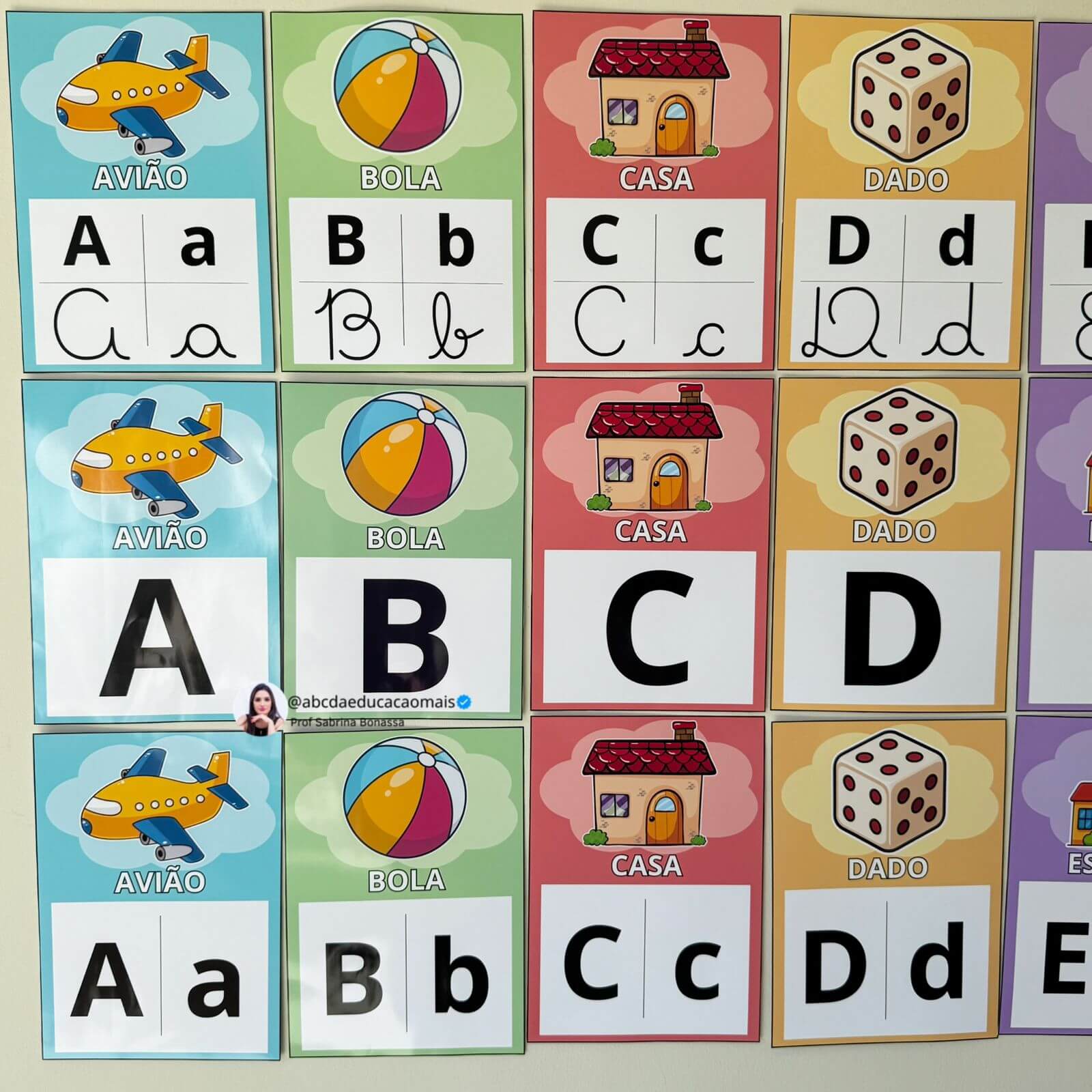 - 26 cartazes do alfabeto de A a Z, com os 4 tipos de letra. Tamanho a4;