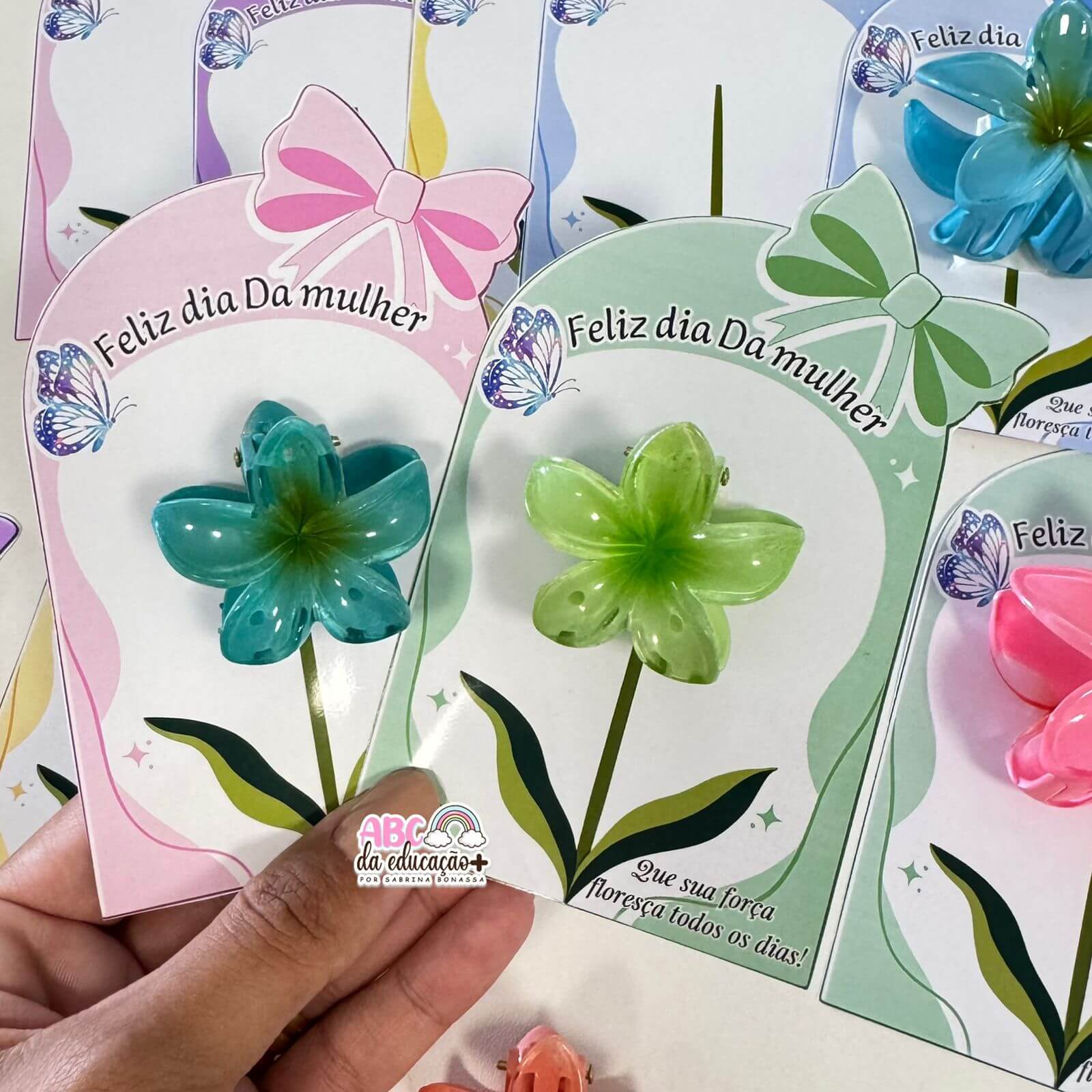 Encante e surpreenda no Dia das Mulheres com este lindo cartão delicado e moderno, acompanhado de piranha em formato de flor! 💐✨