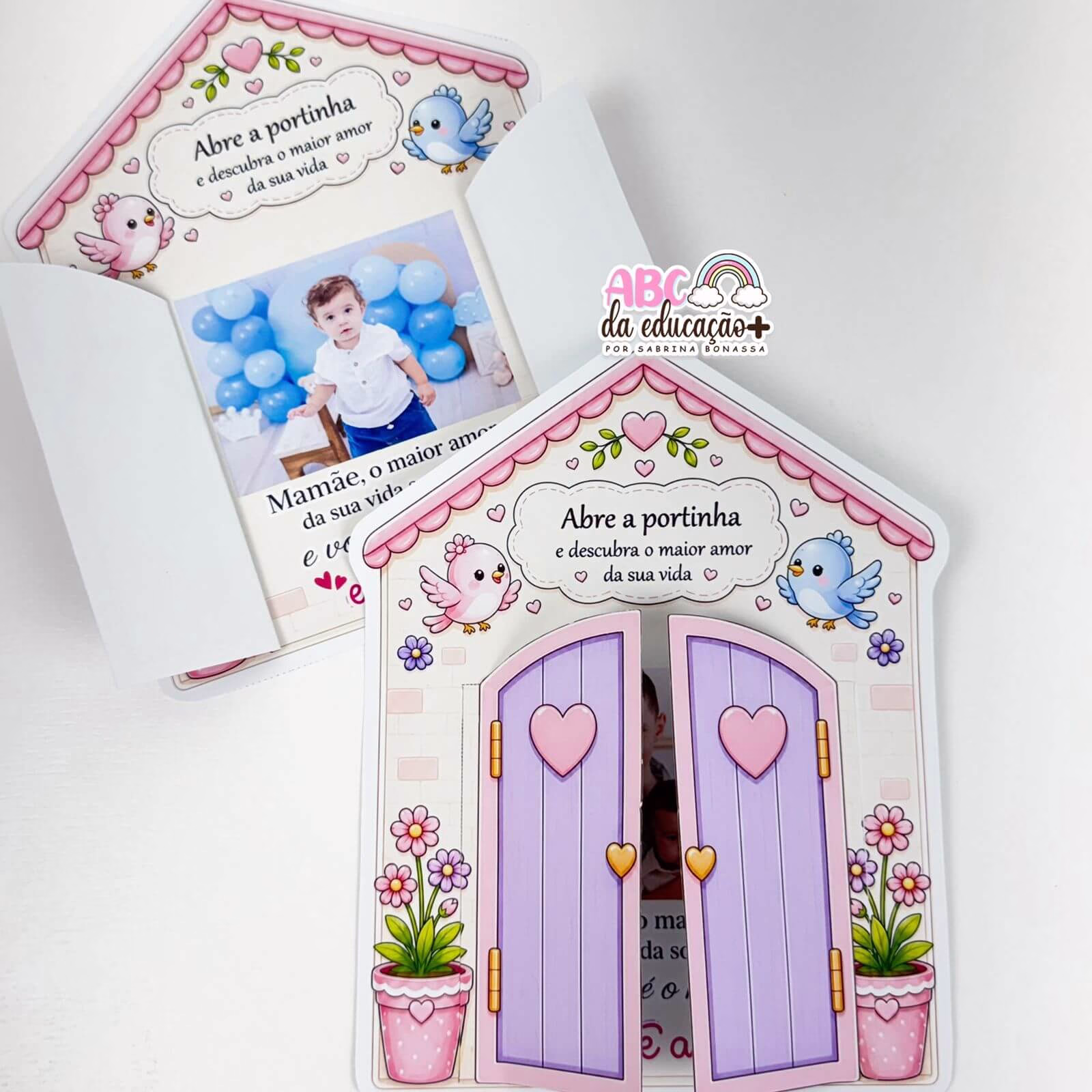 Encante e emocione no Dia das Mães com essa EBOOK casinha interativa com foto, uma lembrancinha simples de montar, mas cheia de significado! 💖Ao abrir a portinha, a mamãe descobre o maior amor da sua vida: a foto da criança, tornando esse momento único e especial.