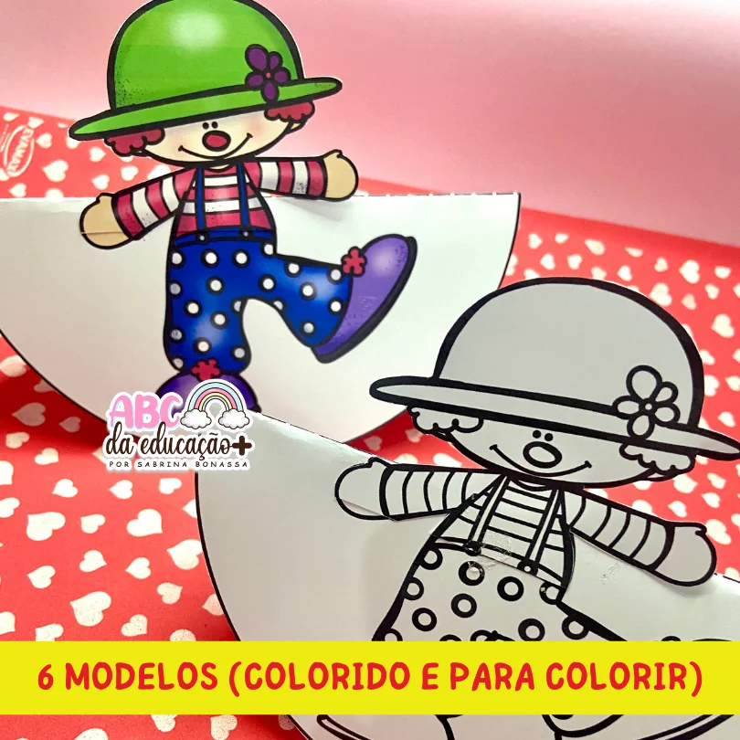 • 6 modelos de atividade interativa com personagens do circo dançantes.