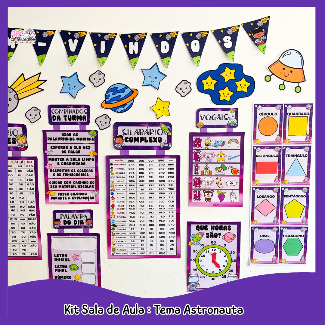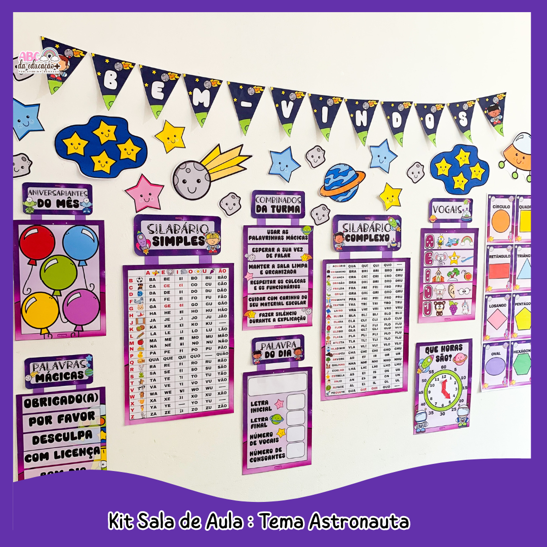 Prepare-se para uma verdadeira aventura intergaláctica em sala de aula! O Kit Sala de Aula : Tema Astronauta foi desenvolvido para transformar o ambiente escolar em um espaço lúdico, organizado e estimulante, despertando a curiosidade e o interesse dos alunos pelo aprendizado.