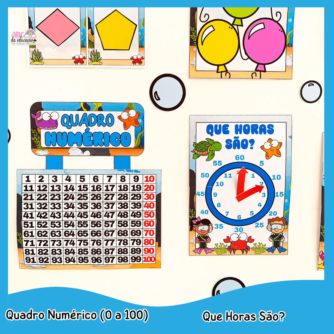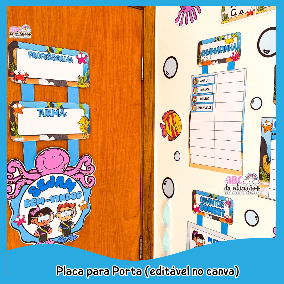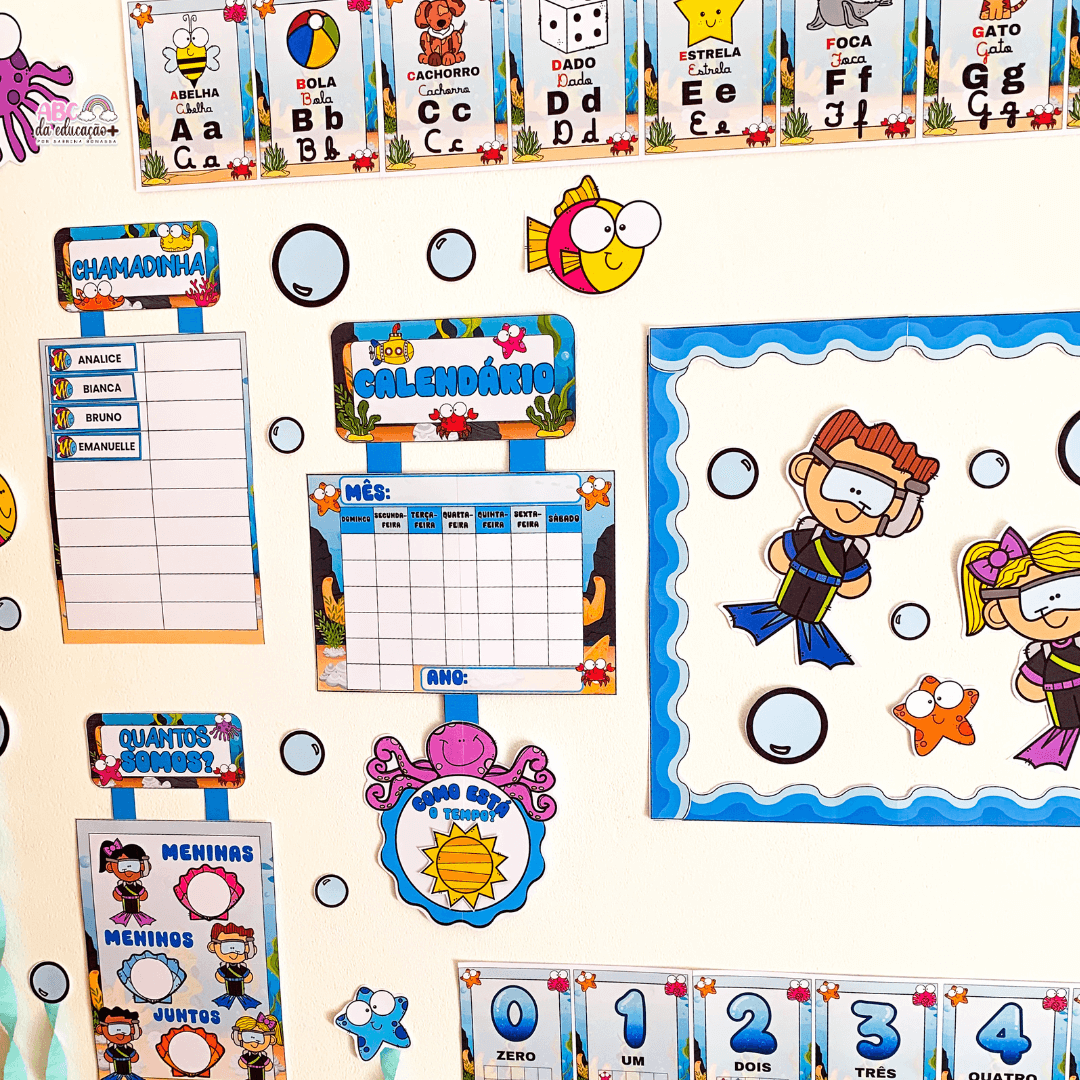 Deixe sua sala de aula ainda mais encantadora, organizada e pedagógica com o Kit Completo de Ornamentação de Sala – Tema Fundo do Mar.