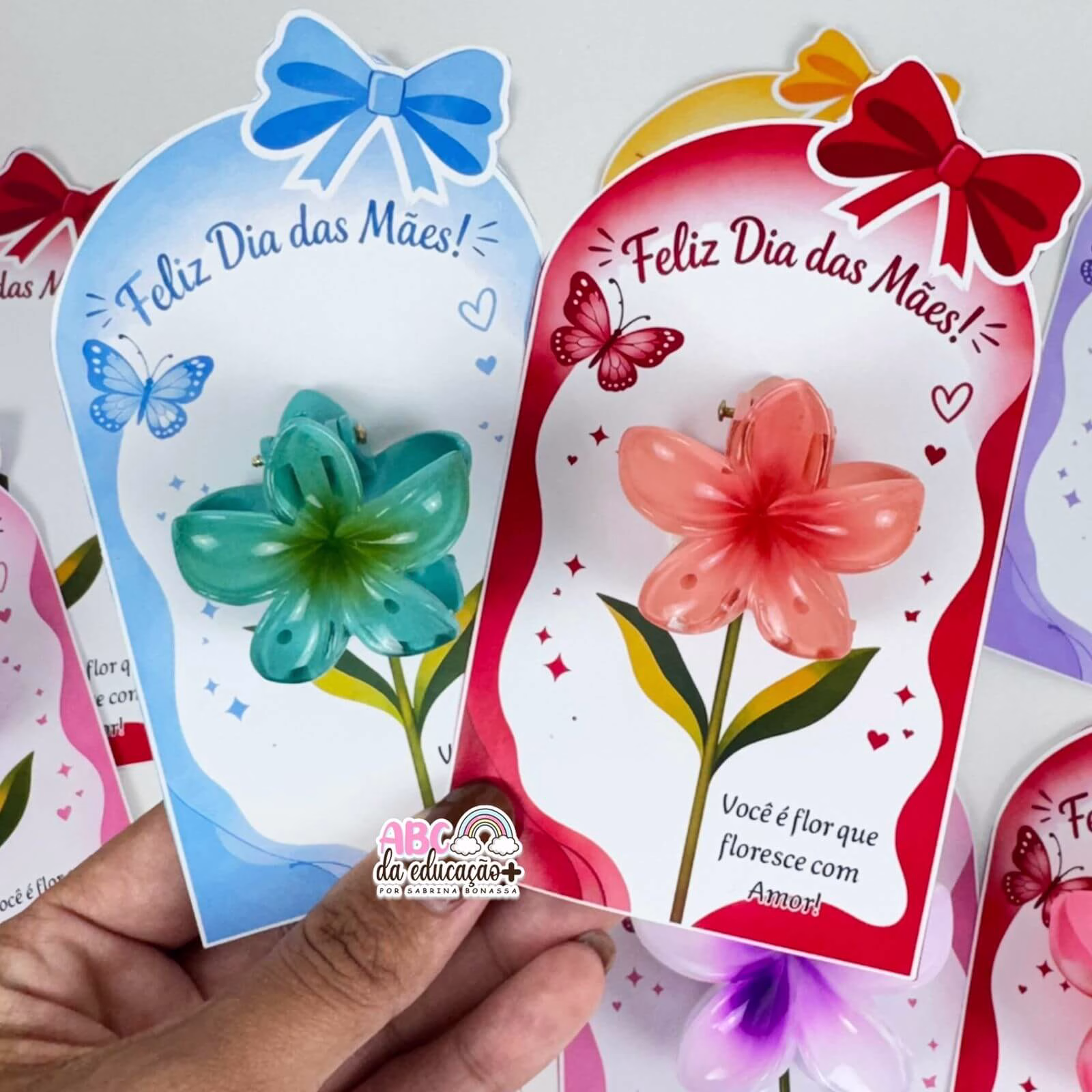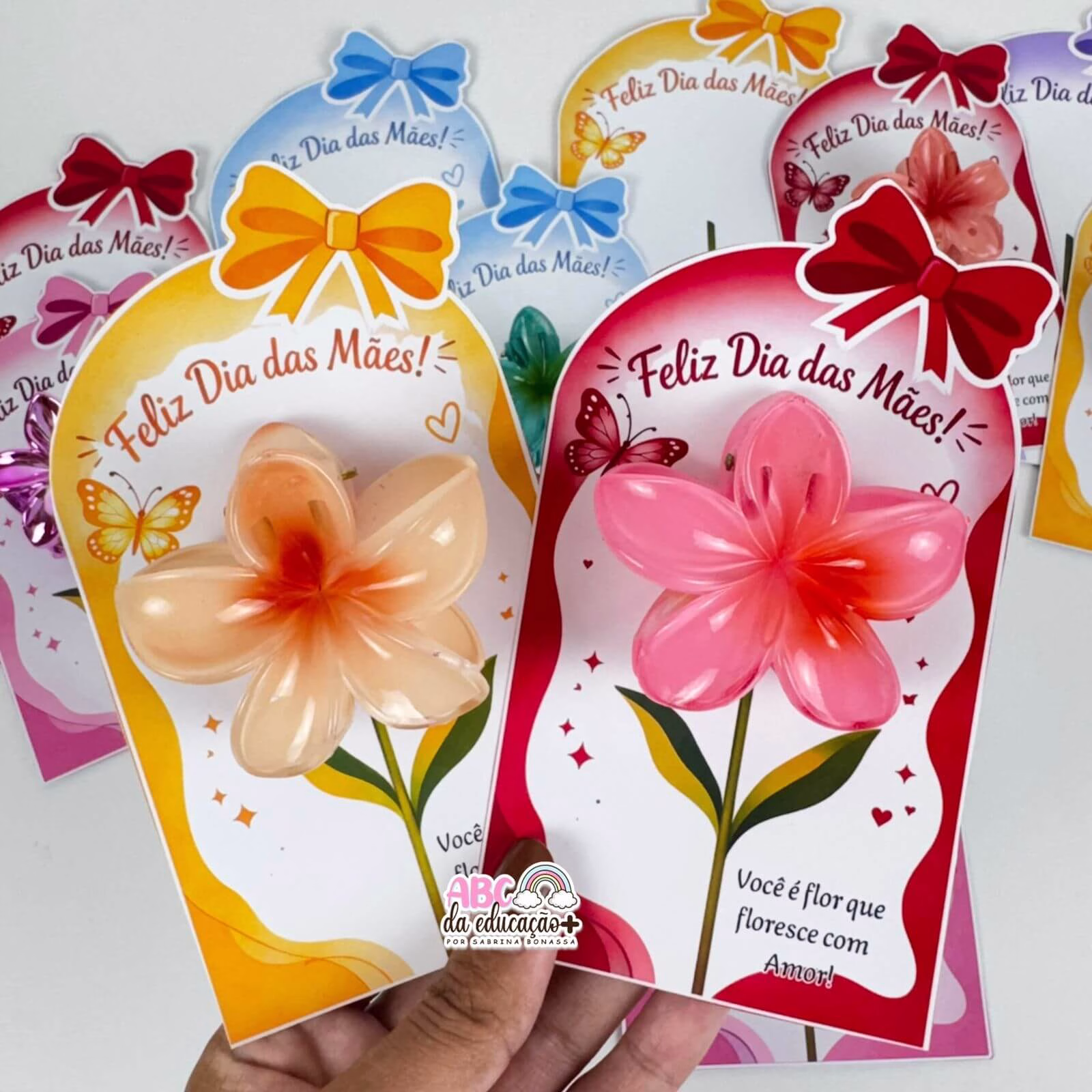 Encante e surpreenda no Dia das Mães com este lindo cartão delicado e moderno, acompanhado de piranha em formato de flor! 💐✨