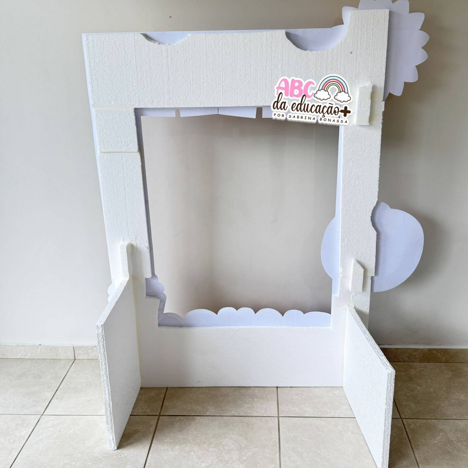 - ✔️1 moldura gigante no tema Dia das Crianças medindo 105x140cm (26 páginas para impressão). Utilizamos 3 placas de isopor 2,0cm. Estrutura toda feita com isopor e colado com fita crepe branca e cola de isopor.