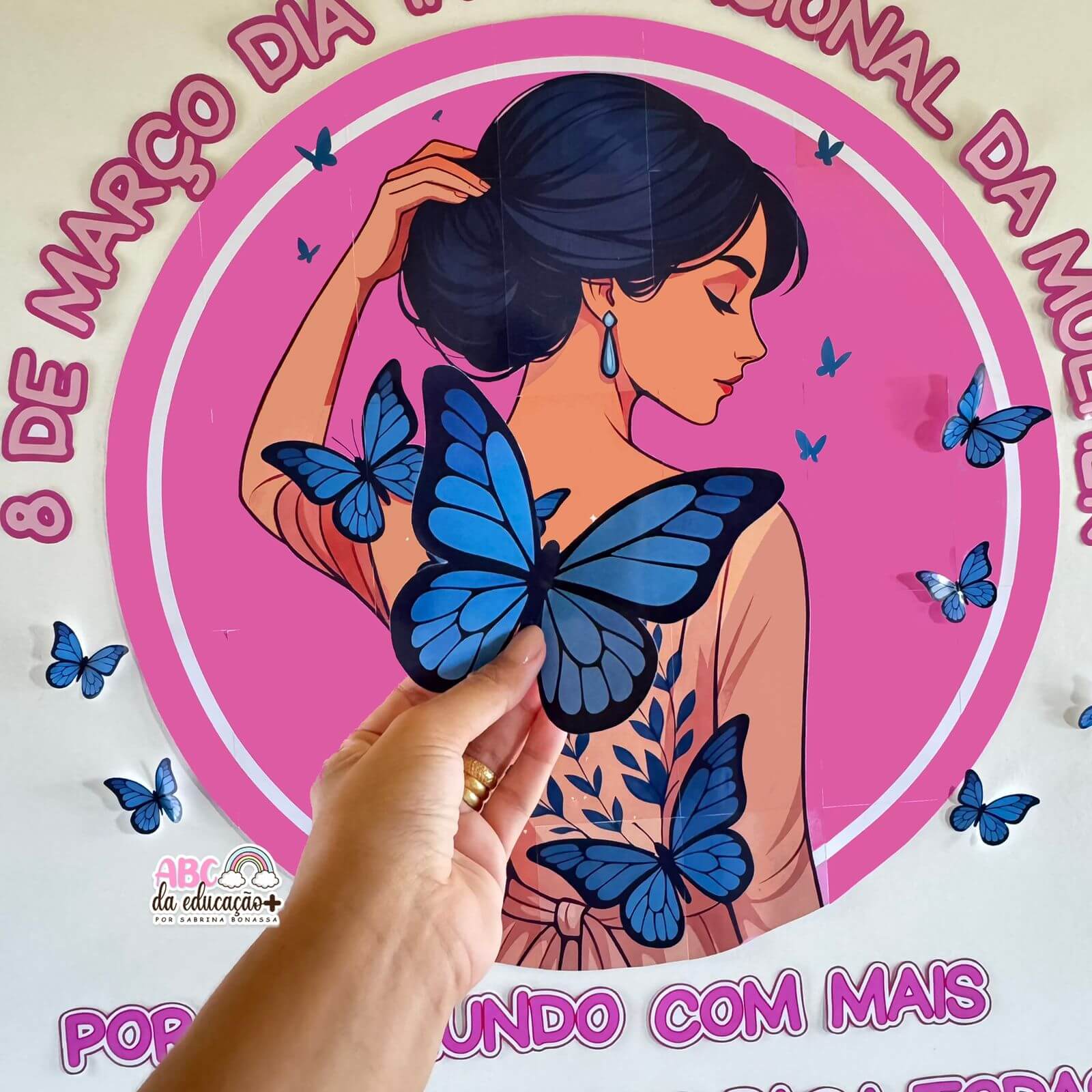 Com design delicado, cores vibrantes e borboletas em destaque, o painel traz a mensagem: