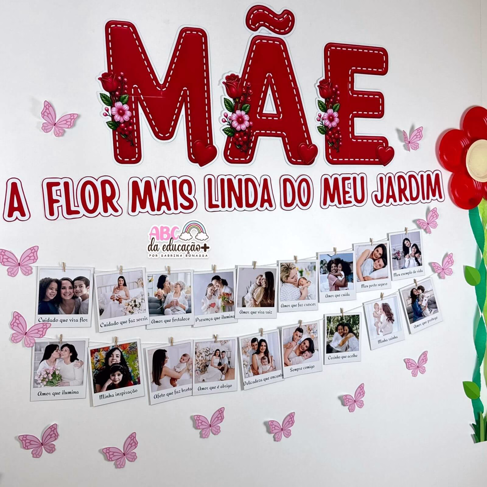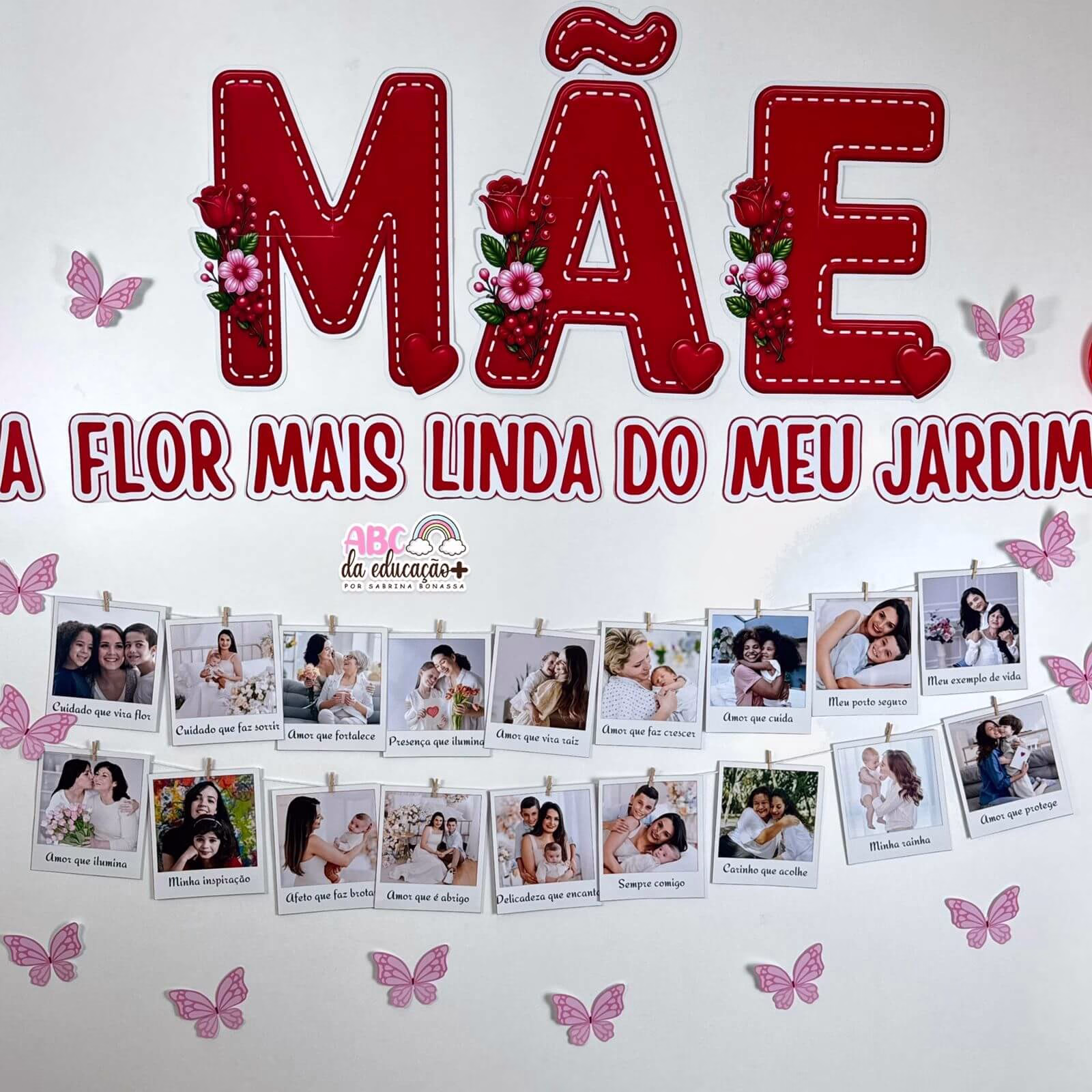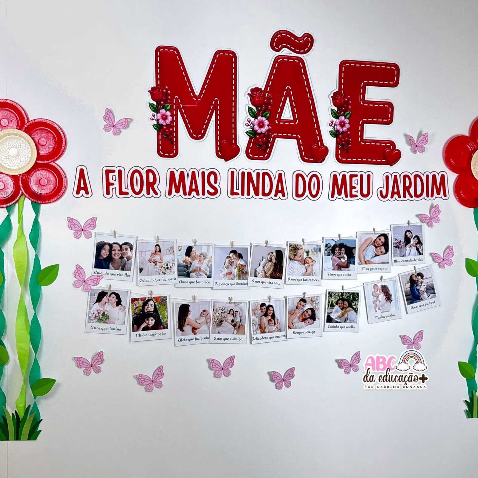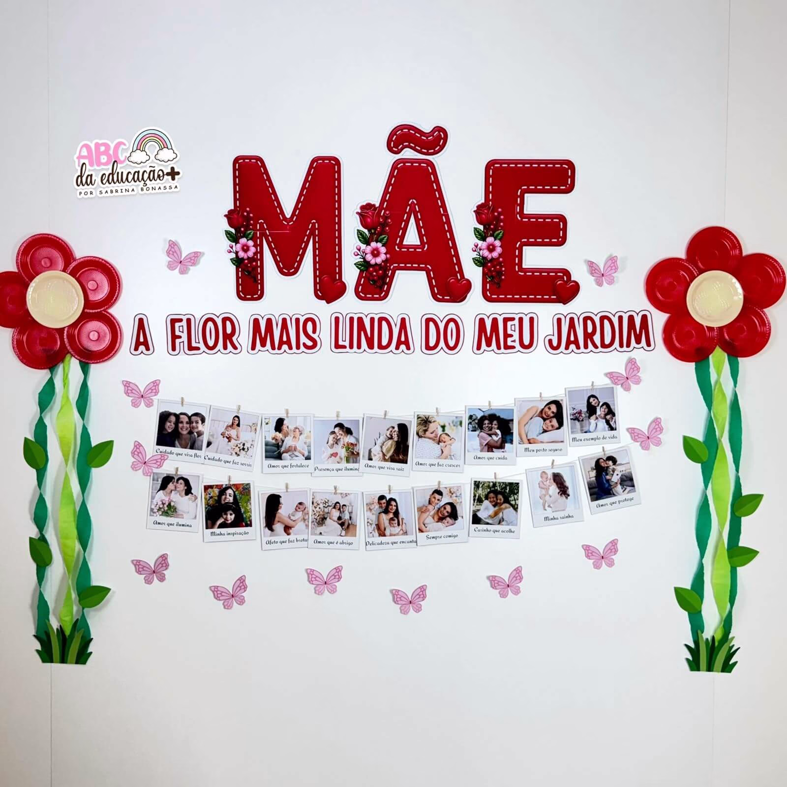 Ideal para escolas que desejam criar um espaço afetivo para homenagear as mães, trabalhar vínculos familiares e ainda produzir um ambiente encantador para fotos 📸