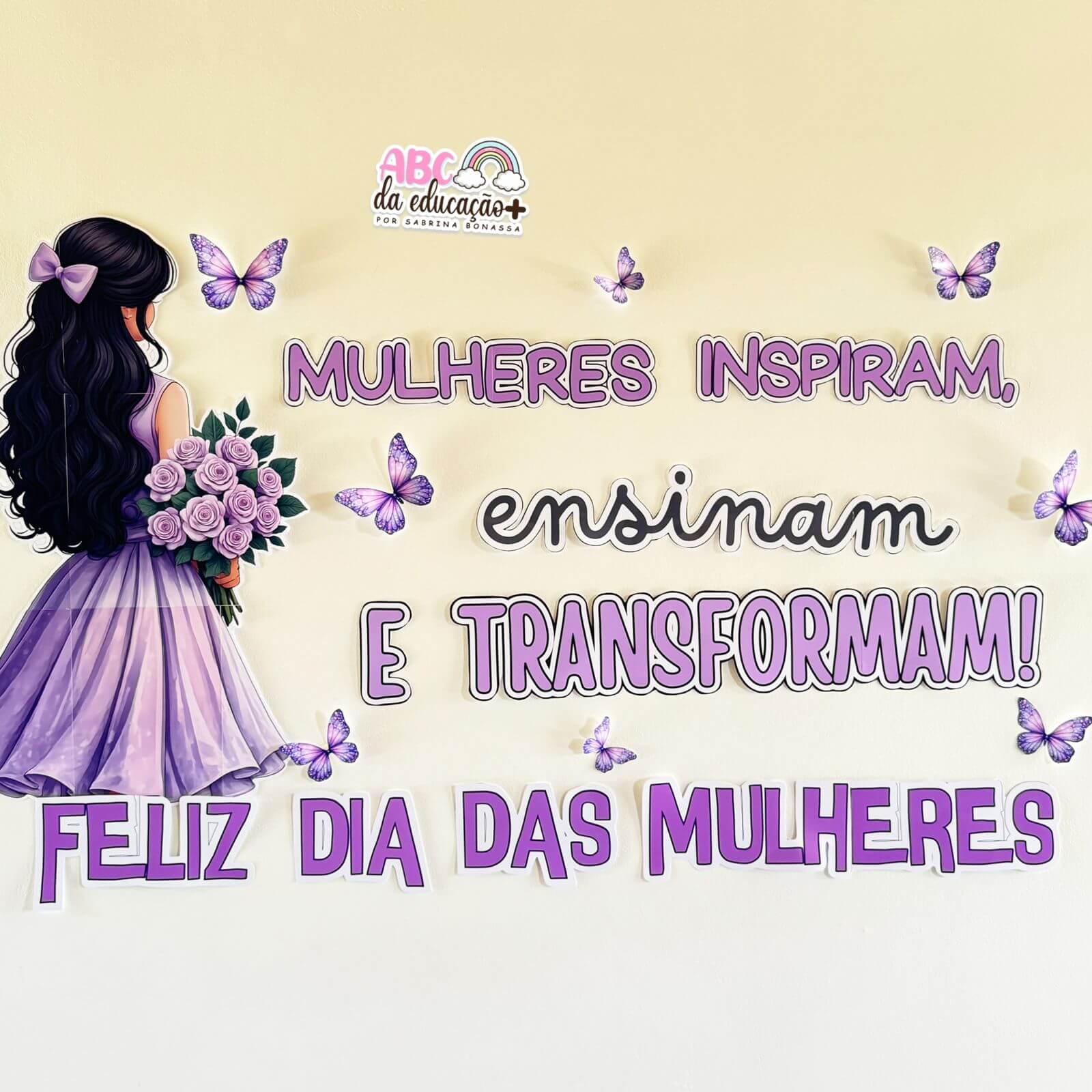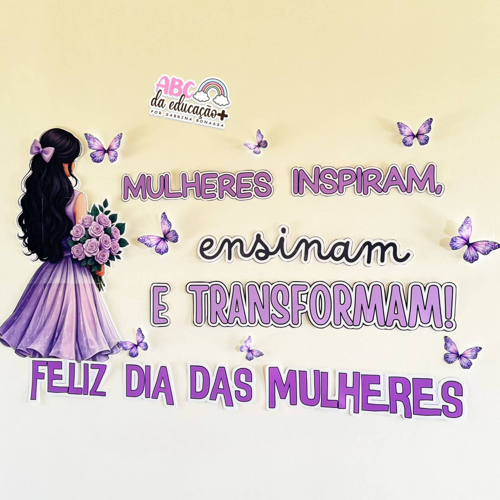 O Painel “Mulheres Inspiram, Ensinam e Transformam” é perfeito para decorar sala de aula, escola, recepção ou qualquer ambiente educativo no dia 8 de março. Com tons lilás, borboletas e uma ilustração encantadora, ele transmite valorização, respeito e reconhecimento à importância das mulheres na sociedade.